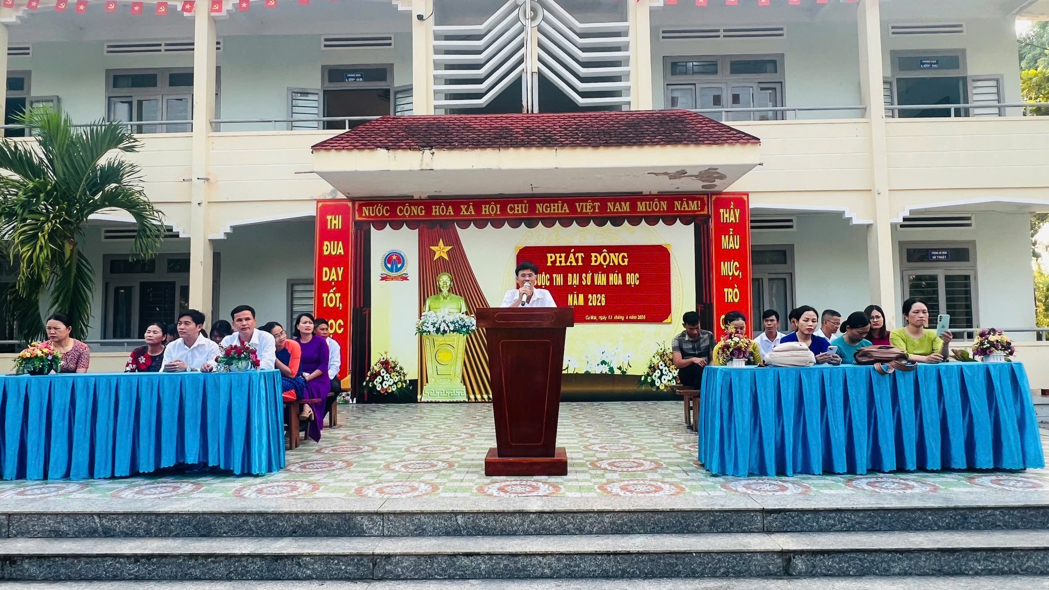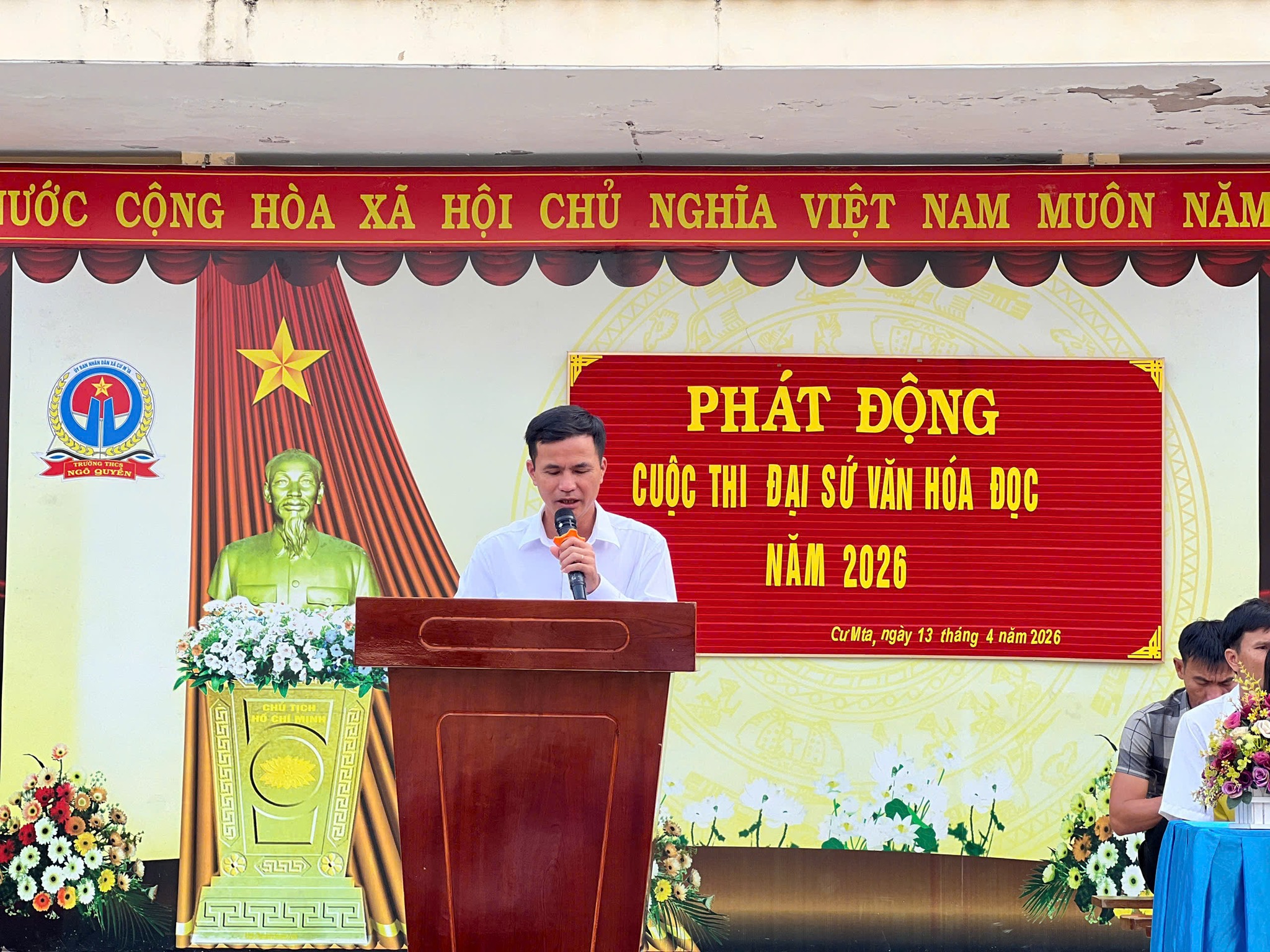 Sáng nay, trong không khí trang nghiêm và đầy hứng khởi của buổi sinh hoạt dưới cờ, Liên đội cùng nhân viên thư viện trường đã chính thức phát động cuộc thi “Đại sứ Văn hóa đọc tỉnh Đắk Lắk năm 2026” đến toàn thể đội viên, học sinh trong nhà trường.