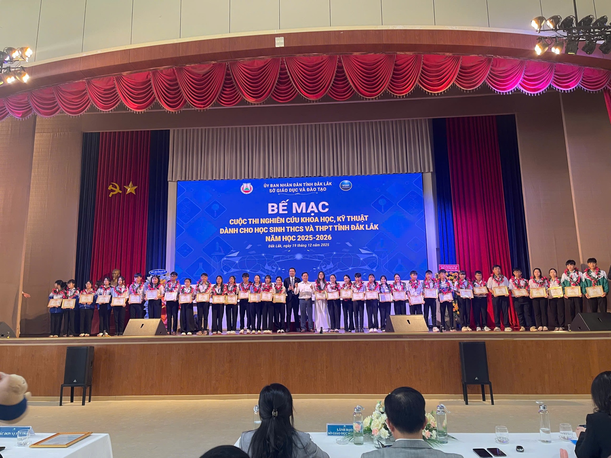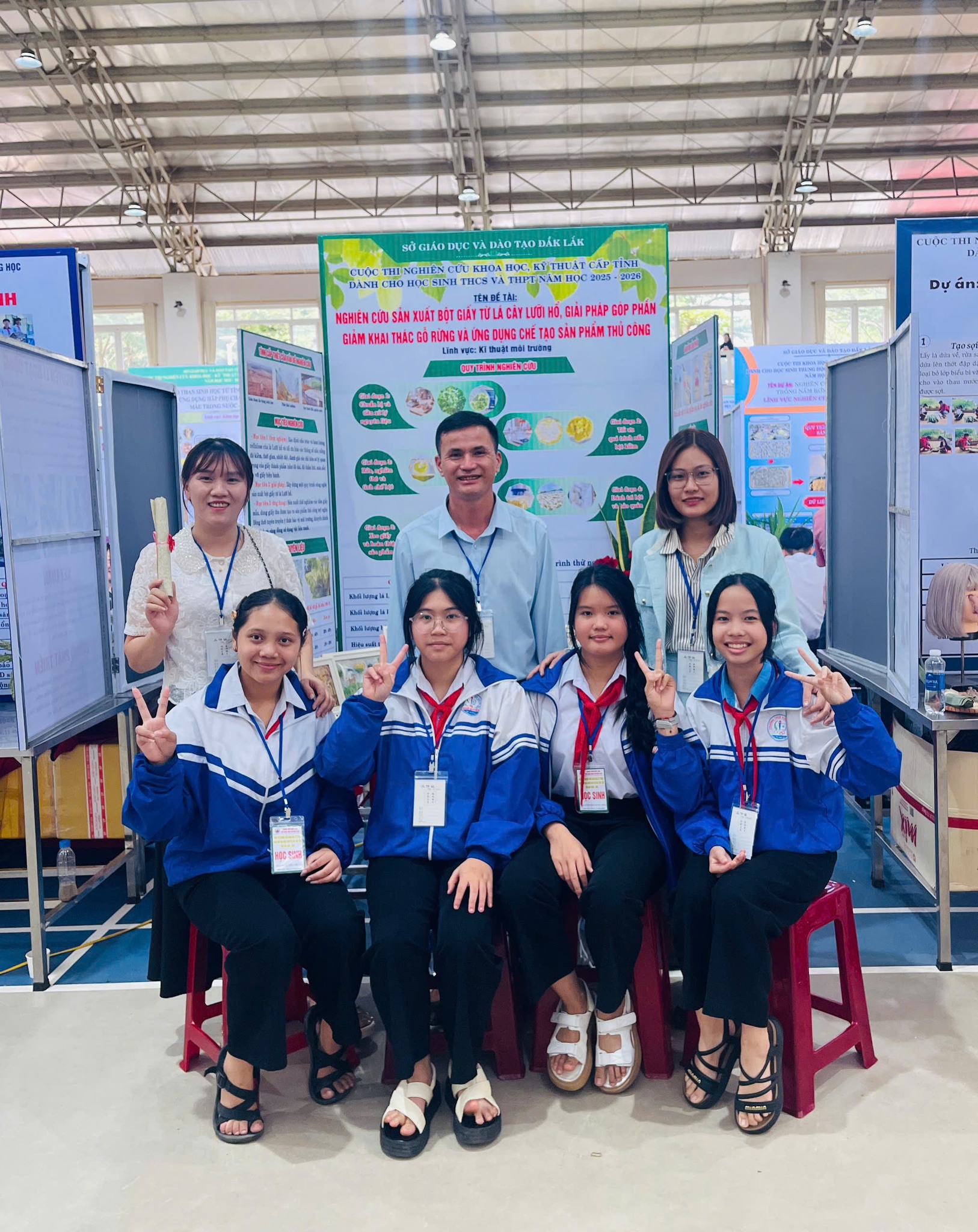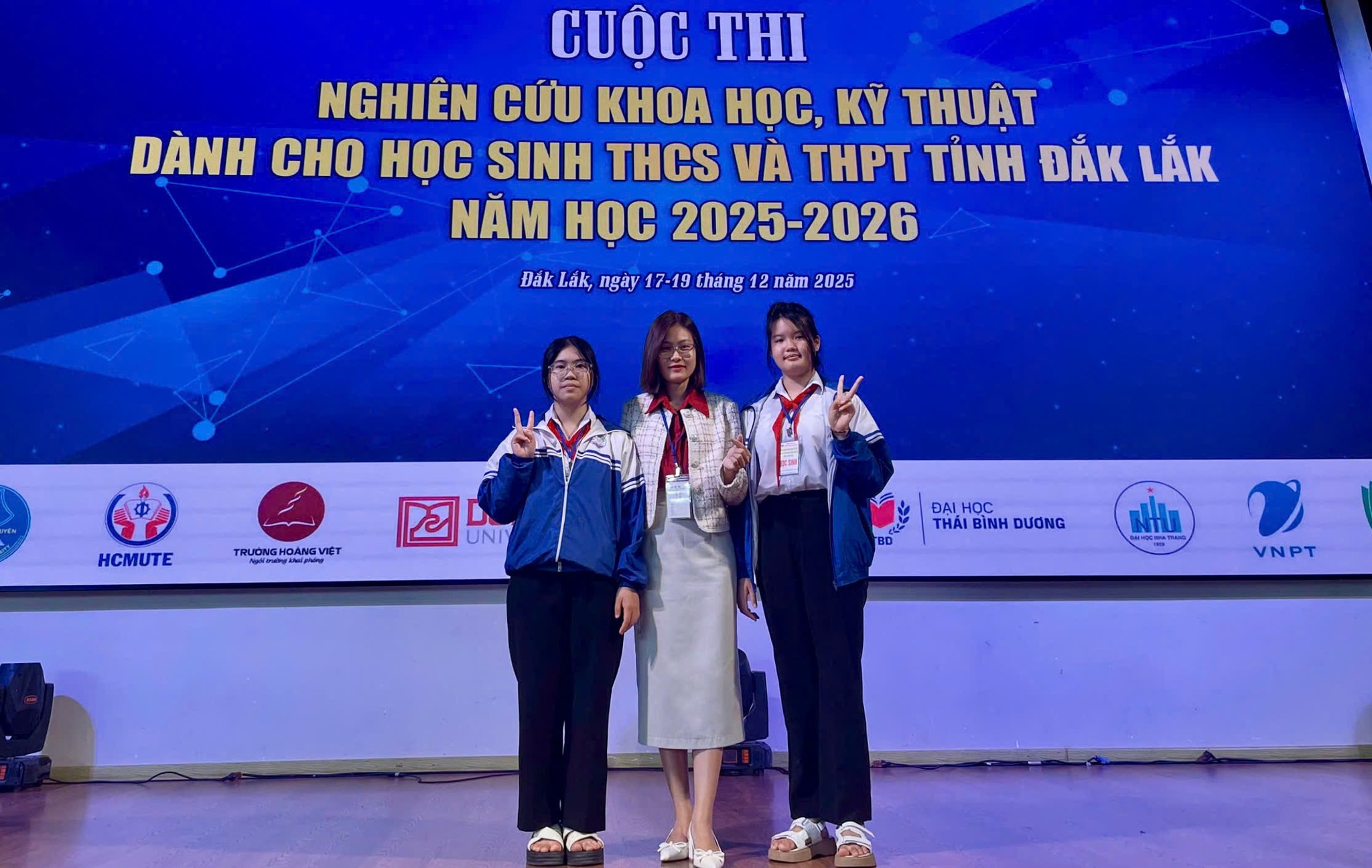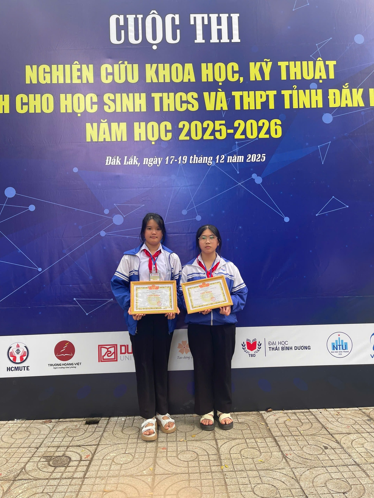 Năm học 2025-2026, trường THCS Ngô Quyền, xã Cư M’ta có 02 sản phẩm KHKT cấp tỉnh. Kết quả: sản phẩm dự thi lĩnh vực Hóa học do cô giáo Phạm Thị Lê tận tâm hướng dẫn, cùng hai em học sinh Đặng Nguyễn Bảo Hân, 8D và Nông Nguyễn Bảo Trúc, 8D thực hiện, đã xuất sắc đạt GIẢI TƯ trong cuộc thi vừa qua.
