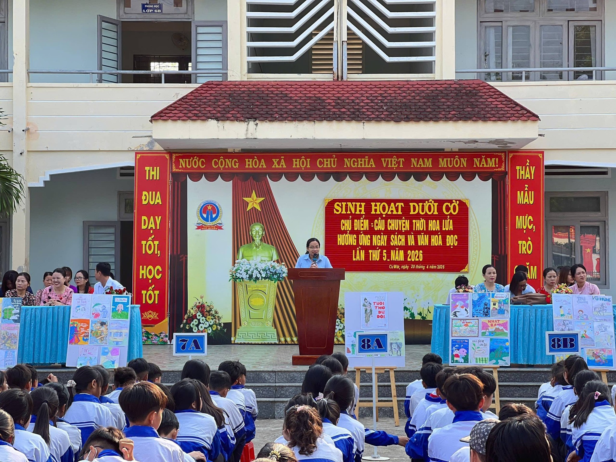 Buổi sinh hoạt dưới cờ tuần 30 không chỉ là hoạt động thường kỳ mà còn là dịp giáo dục truyền thống, bồi dưỡng lý tưởng sống đẹp, lan tỏa văn hóa đọc và tiếp thêm động lực cho học sinh phấn đấu trong học tập, rèn luyện.